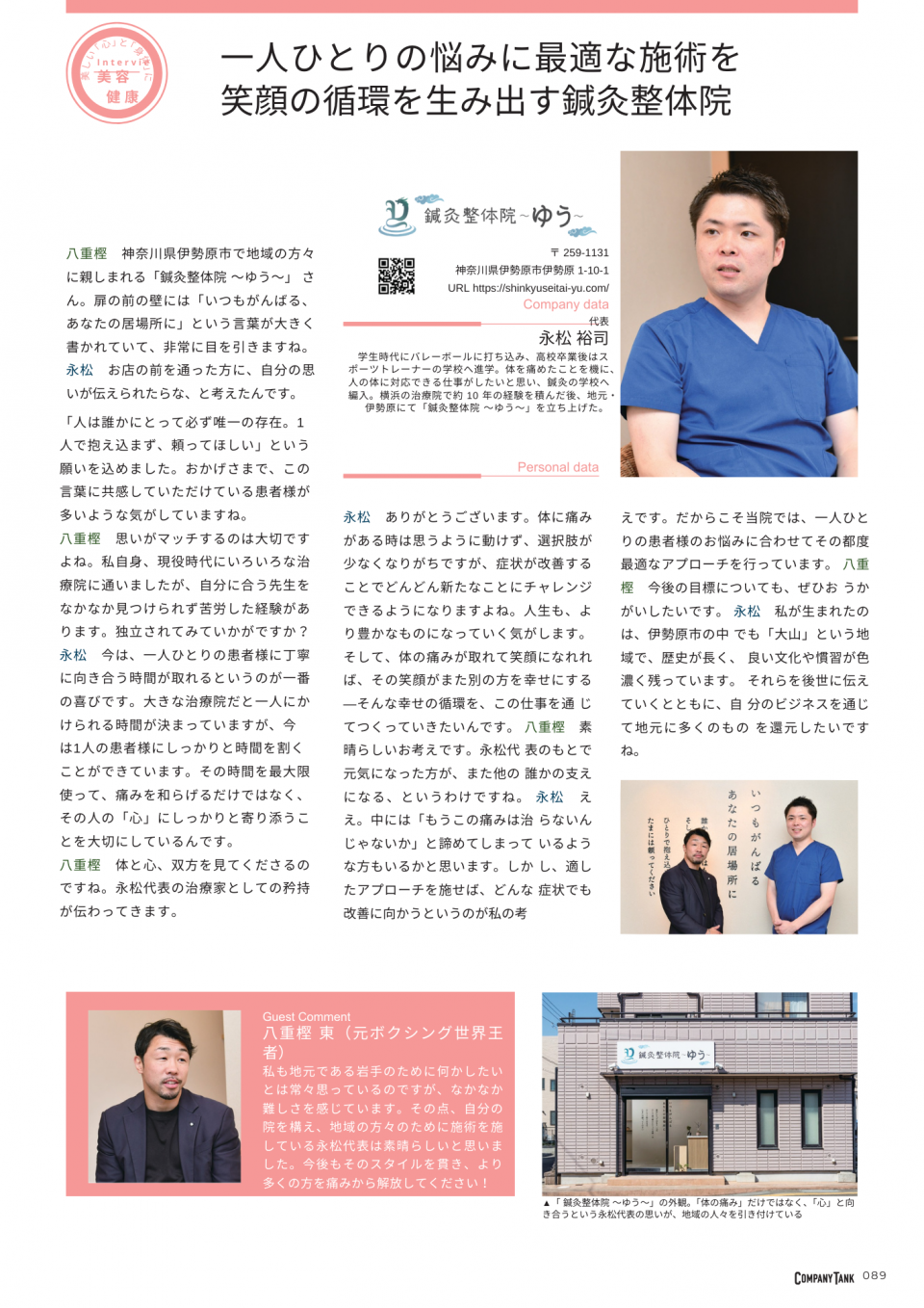 八重樫 体と心、双方を見てくださるのですね。永松代表の治療家としての矜持が伝わってきます。