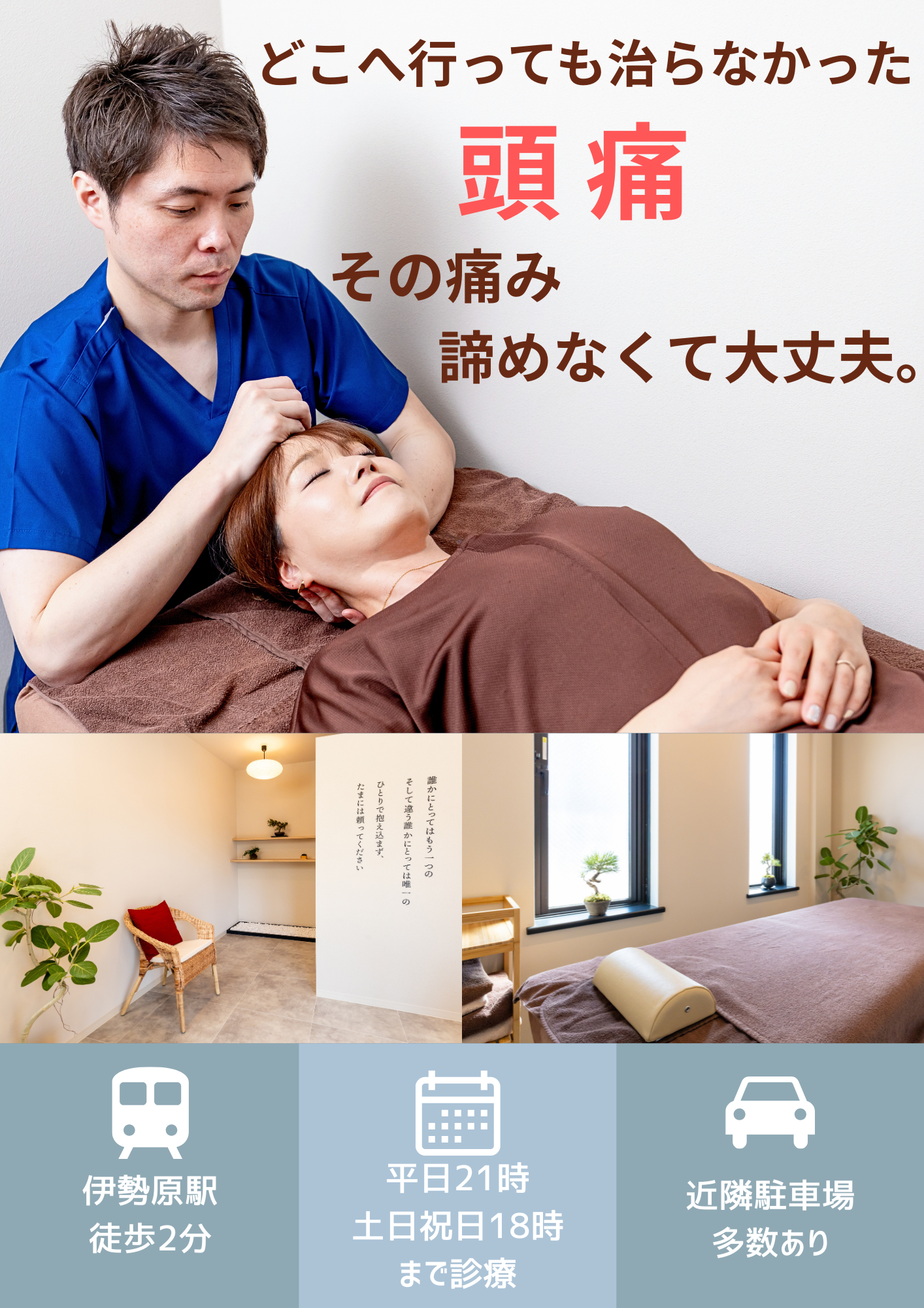 当院はどこへ行っても痛みが治らない人が通う施術院です。