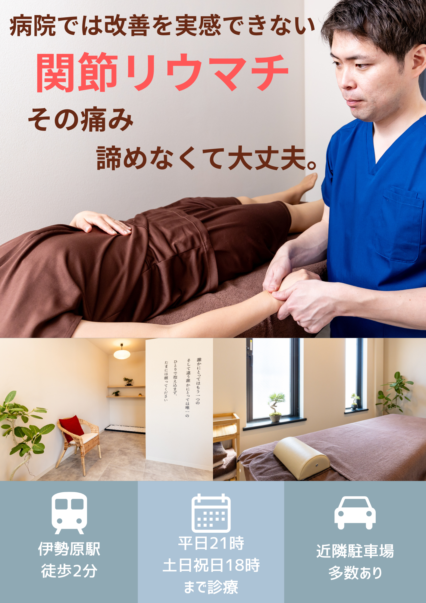 当院はどこへ行っても痛みが治らない人が通う施術院です。